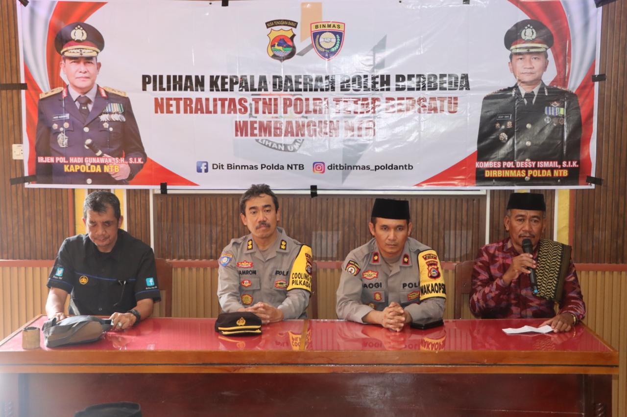 Bima – Tim Nusantara Cooling System (NSC) Polda NTB, yang dipimpin Wakil Direktur Binmas AKBP H. Zamroni, S.Ag. bersama lima anggota, menyasar Desa Panda Kecamatan Palibelo Kabupaten Bima. Kegiatan tersebut bertujuan untuk mempererat silaturahmi, sekaligus menciptakan suasana kondusif menjelang pemungutan suara Pilkada Serentak 2024.