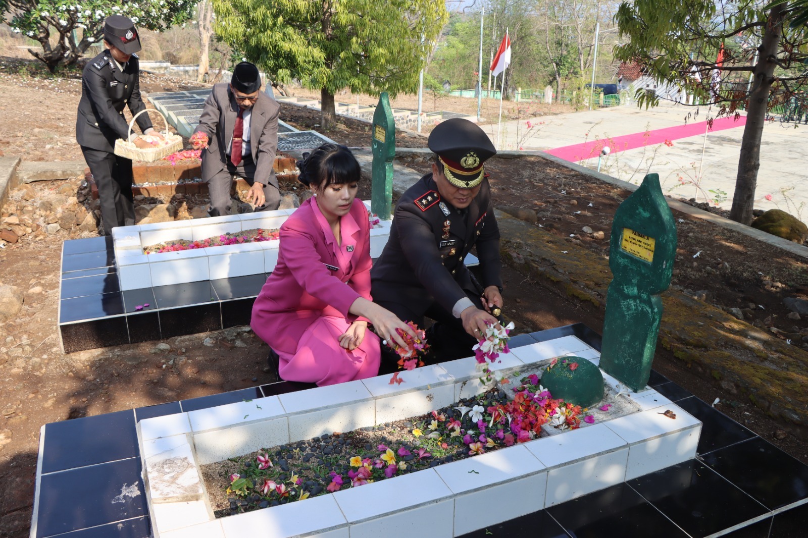 Bertindak sebagai Inspektur Upacara, Kapolres Sumbawa memimpin langsung penghormatan terhadap para pahlawan dan peletakan karangan bunga di pusara para pahlawan sebagai tanda penghargaan serta di lanjutkan doa bersama.