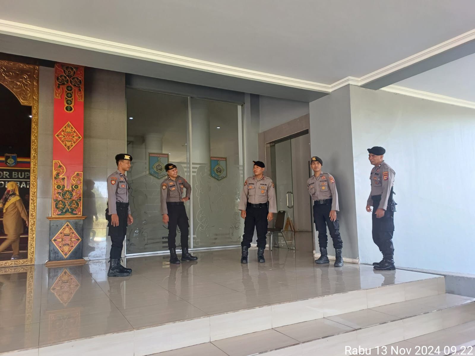 Pada Rabu, 13 November 2024, sekitar pukul 09.42 WITA, empat personel dari Satuan Samapta Polres Lombok Barat melaksanakan patroli di Kantor DPRD Kabupaten Lombok Barat, Kecamatan Gerung, Kabupaten Lombok Barat.