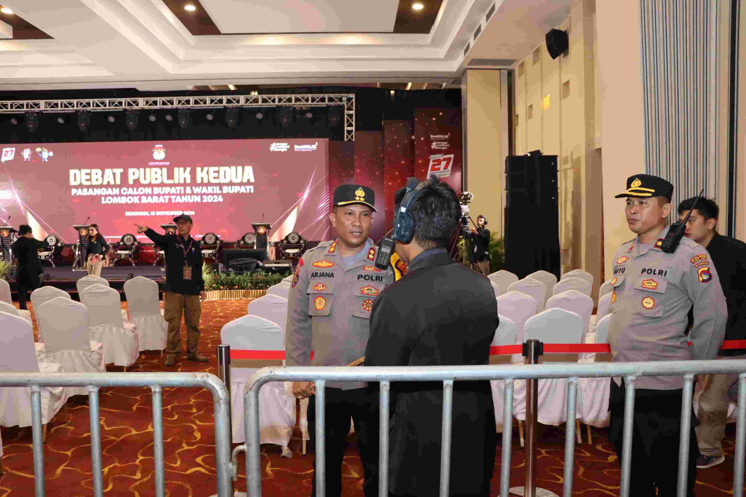 Sebelum acara dimulai, Polres Lombok Barat melakukan sterilisasi area debat menggunakan metal detektor, mencakup ruang debat utama hingga ruang transit.