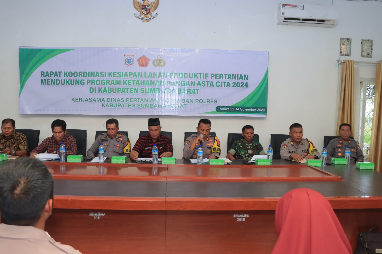 Sumbawa Barat – Polres Sumbawa Barat bekerja sama dengan Pemerintah Daerah melalui Dinas Pertanian dan Perkebunan Kab. Sumbawa Barat dan Kodim 1628/Sumbawa Barat menggelar Rapat Koordinasi di Aula Dinas Pertanian dan Perkebunan, Kamis (14/11/2024).
