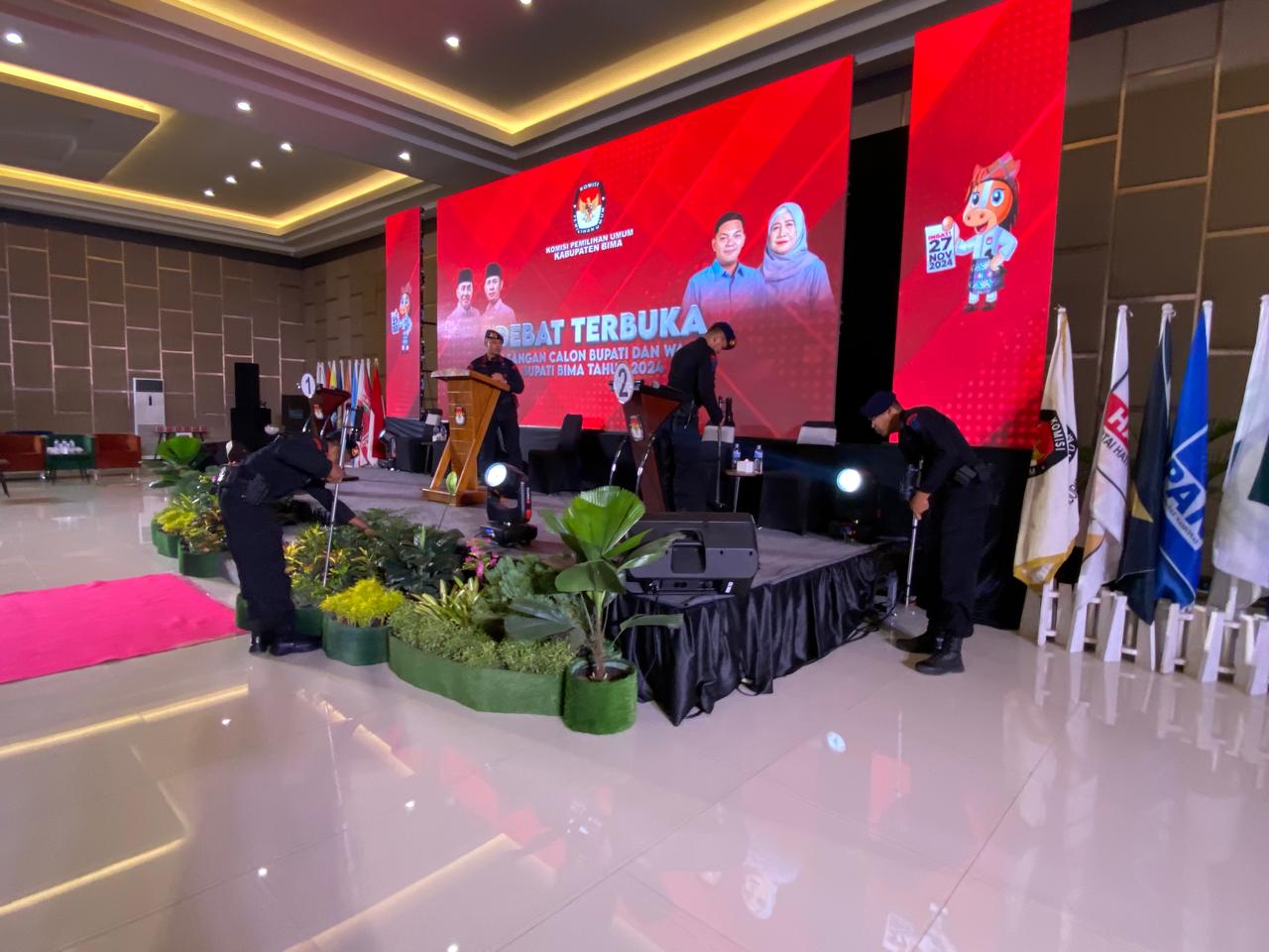 Kegiatan ini merupakan bagian dari upaya pengamanan ketat yang dilakukan untuk mendukung kelancaran debat terbuka yang menjadi salah satu tahapan penting Pilkada Bima 2024.