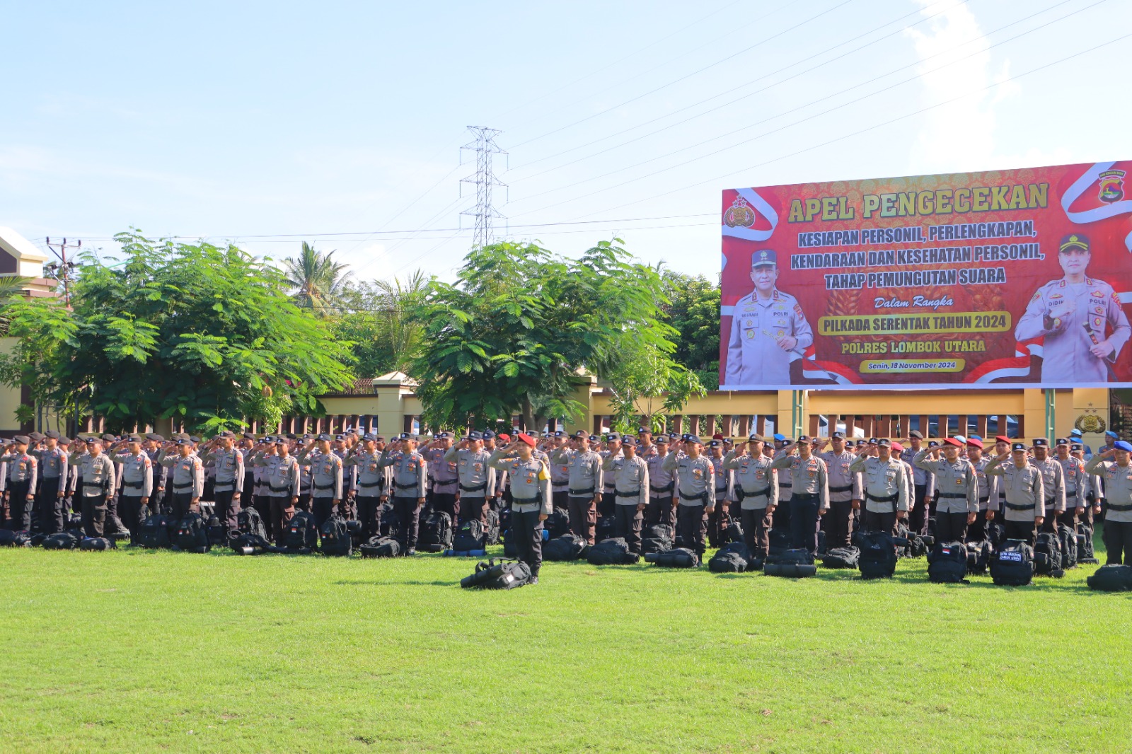 Lombok Utara, NTB – Dalam rangka memastikan kesiapan pengamanan Pilkada Serentak 2024, Kapolres Lombok Utara, AKBP Didik Putra Kuncoro,S.I.K,M.Si., memimpin Apel Pengecekan Kesiapan personil di halaman Mapolres Lombok Utara. Kegiatan ini melibatkan pemeriksaan menyeluruh terhadap perlengkapan, kendaraan, dan kesehatan personil.