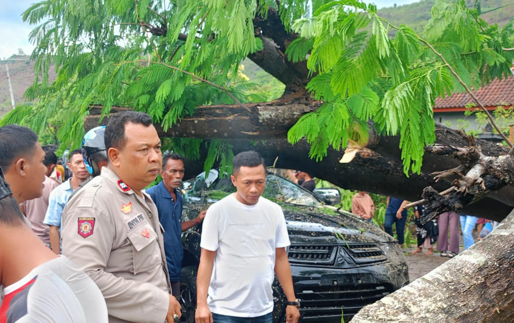 Hujan deras disertai petir besar melanda wilayah Kecamatan Manggelewa, Kabupaten Dompu, sore ini, menyebabkan pohon sengon tumbang di jalan lintas Sumbawa-Bima, tepatnya di Dusun Lara, Desa Nangga Tumpu. Insiden tersebut menimpa sebuah mobil Mitsubishi Pajero hitam bernomor polisi EA 1224 SE, yang dikemudikan oleh Muhamad Khalaka Aldura Pasha, warga Karara, Kota Bima.