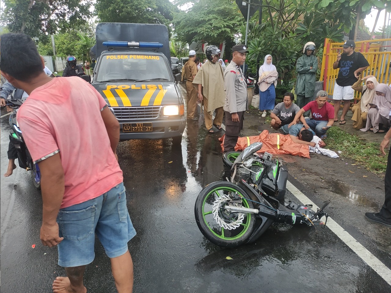 Lakalantas terjadi sekitar pukul 14.35 wita, saat sepeda motor yang kendarai korban melaju dengan kondisi jalan yang habis hujan dan licin dari arah Pemenang menuju ke arah Tanjung.