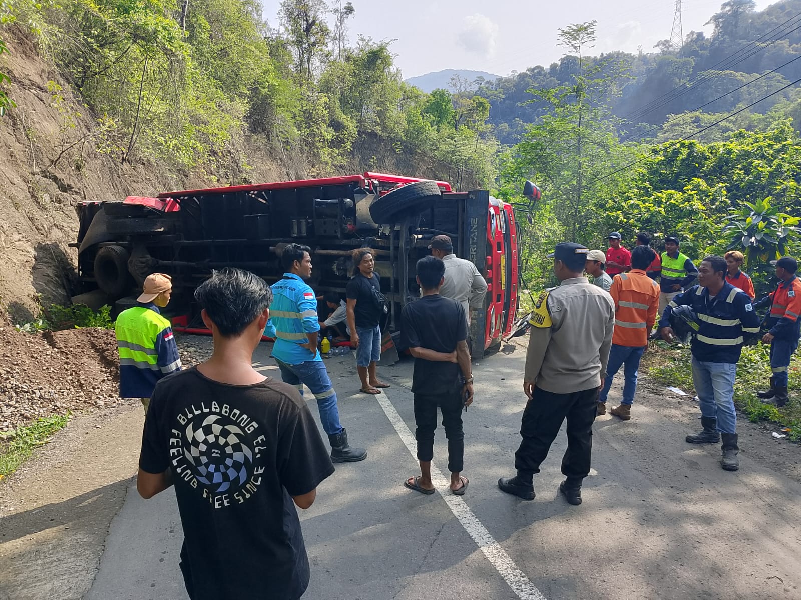 Kapolres Sumbawa Barat, AKBP Yasmara Harahap, S.I.K., melalui Kapolsek Maluk, Kompol Tohir, S.H., menerangkan Truk Fuso warna merah Nomor Polisi P 86** UR yang bermuatan scafholding dikemudikan oleh (AW) dari arah Maluk ke Sekongkang, pada saat di tanjakan truk tidak kuat menanjak sehingga mundur sehingga bagian belakang bak truk menghantam tebing mengakibatkan truk terguling melintang di jalan raya.