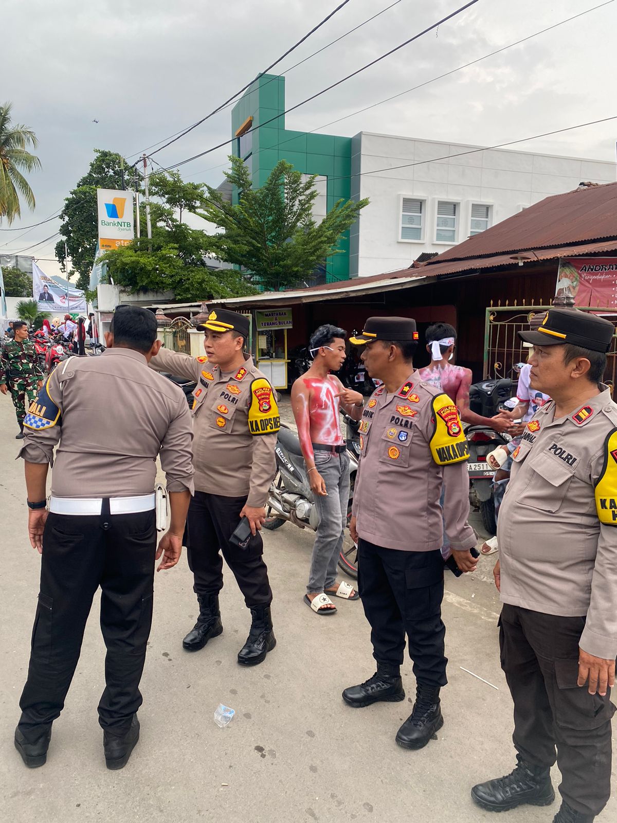 Kapolres Sumbawa Barat, AKBP Yasmara Harahap, S.I.K., turun langsung ke lokasi kampanye dan melakukan pemantauan di beberapa titik pengamanan untuk memastikan pengamanan berjalan dengan efektif sehingga tidak menimbulkan kemacetan arus lalu lintas.