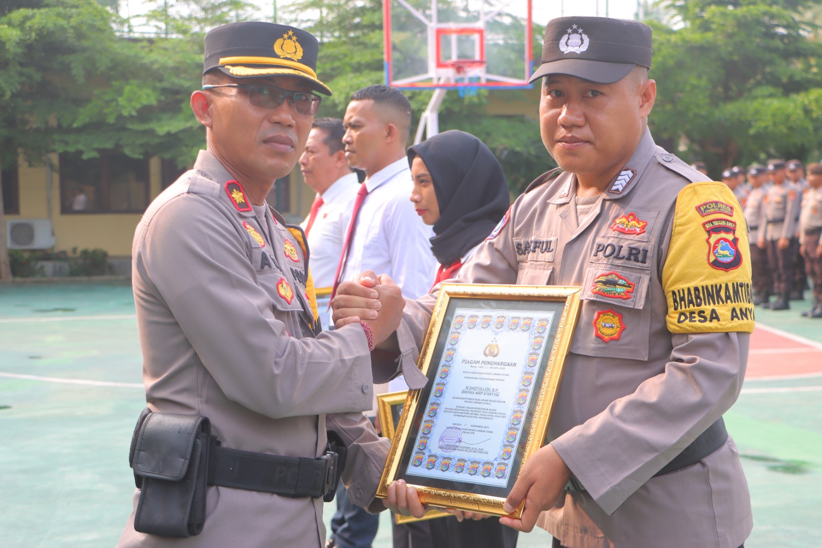 Lombok Utara, NTB – Guna meningkatkan kinerja dan Inovasi kepada anggota Polres Lombok Utara, Kapolres Lombok Utara memberikan penghargaan (reward) kepada personilnya yang berprestasi, Dalam kegiatan Apel pemberian penghargaan Kapolres Lombok Utara AKBP Didik Putra Kuncoro S.I.K. M.Si. diwakili oleh Wakapolres Lombok Utara Kompol I Nyoman Adi Kurniawan SH , pimpin Apel pagi dan di rangkaikan dengan pemberian penghargaan kepada 5 personel Polres Lombok Utara yang bertempat di Lapangan apel Tatag Trawang Tungga Polres Lombok Utara, Senin, 25/11/2024.