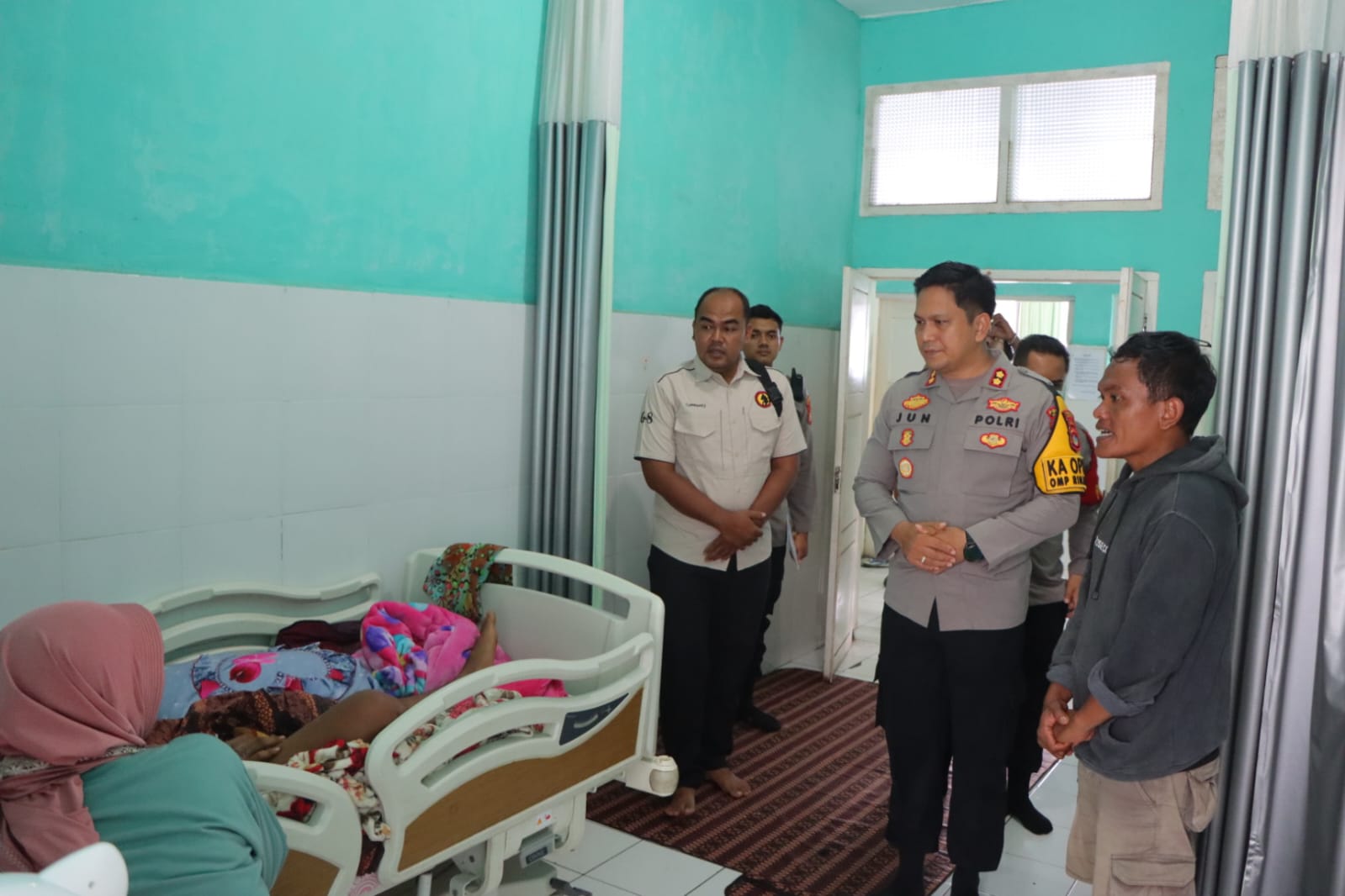 Sumbawa Besar-NTB, Kapolres Sumbawa AKBP Bagus Nyoman Gede Junaedi SH, S.IK, M.AP., didampingi PJU Polres Sumbawa menjenguk korban penganiayaan brinsial RK (27) yang tengah di rawat di RSUD Sumbawa, Minggu (24/11/24) sore.