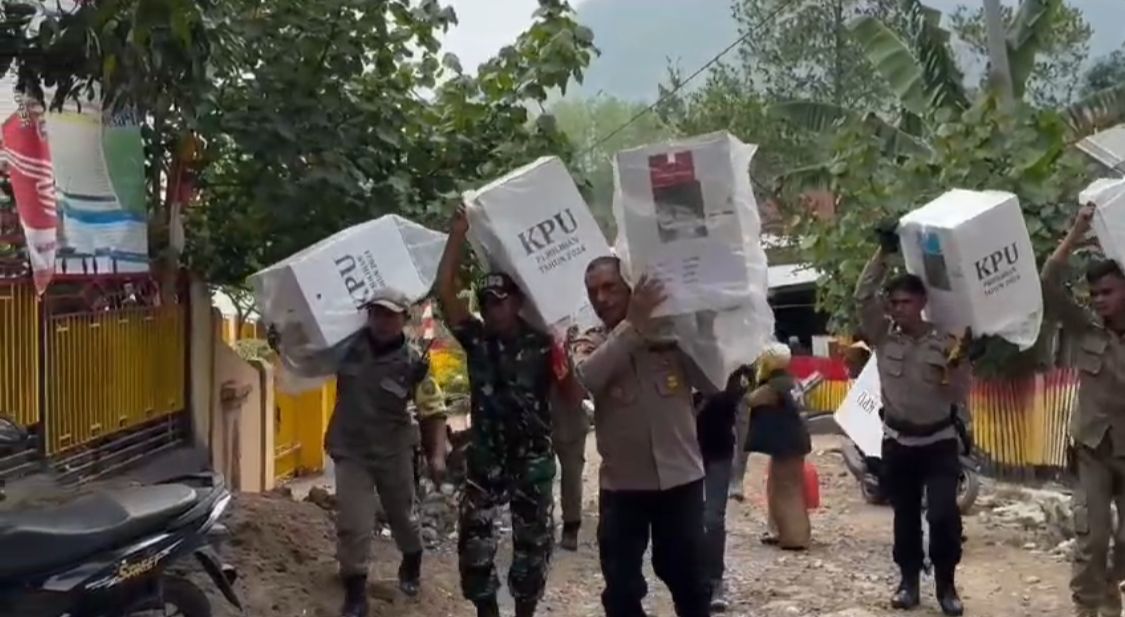 Medan berat dan perjalanan yang harus ditempuh dengan berjalan kaki tidak menghalangi komitmen para petugas keamanan. Kapolres Bima Kota AKBP Yudha Pranata, S.I.K., S.H., mengapresiasi sinergi luar biasa antara aparat yang berhasil memastikan setiap kotak suara tiba dalam keadaan utuh dan aman.