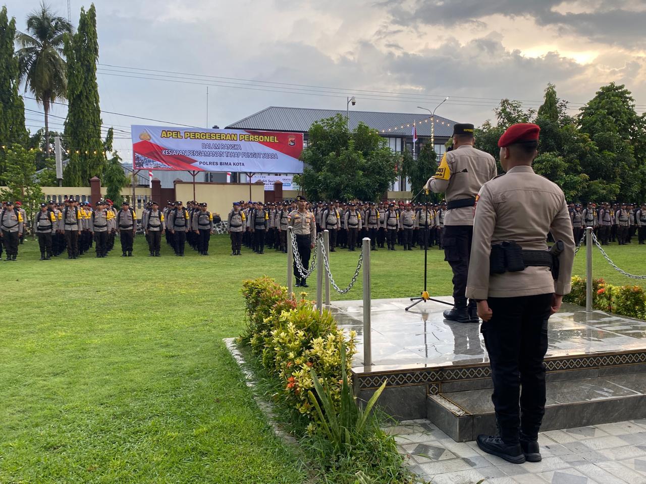 Pelepasan personel dilakukan melalui Apel Pergeseran Pasukan yang berlangsung di Lapangan Presisi Mako Polres Bima Kota. Upacara tersebut dipimpin langsung oleh Kapolres Bima Kota, AKBP Yudha Pranata, S.I.K., S.H., serta dihadiri oleh pejabat utama Polres Bima Kota, pejabat Pemerintah Kota Bima, dan perwakilan Makodim 1608/Bima.