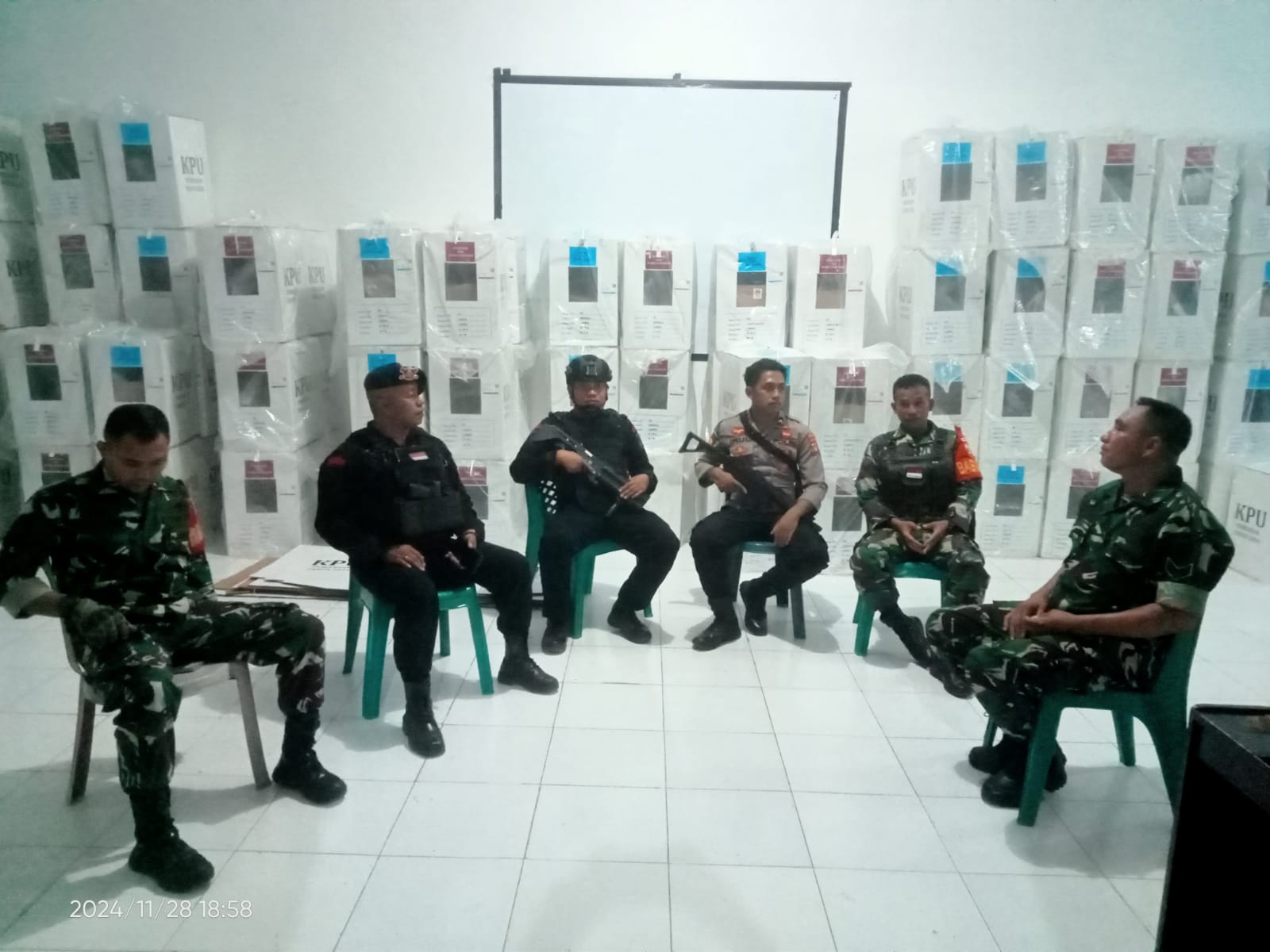 “Personel kami disiagakan di lokasi untuk mengawal keamanan logistik pemilu, termasuk surat suara dan dokumen penting lainnya, agar seluruh proses berjalan kondusif dan bebas dari potensi gangguan,” ujar Aipda Nasrun.