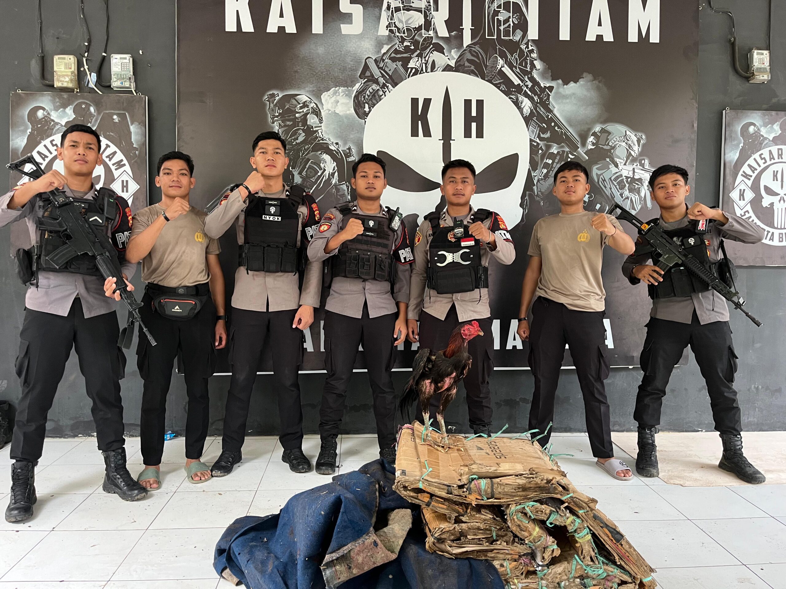 Saat penggerebekan berlangsung, para pelaku judi telah melarikan diri meninggalkan arena. Meski demikian, tim Sat Samapta berhasil menyita sejumlah barang bukti yang ditinggalkan, di antaranya satu ekor ayam aduan, gelanggang aduan, dan karpet yang digunakan sebagai alas arena.