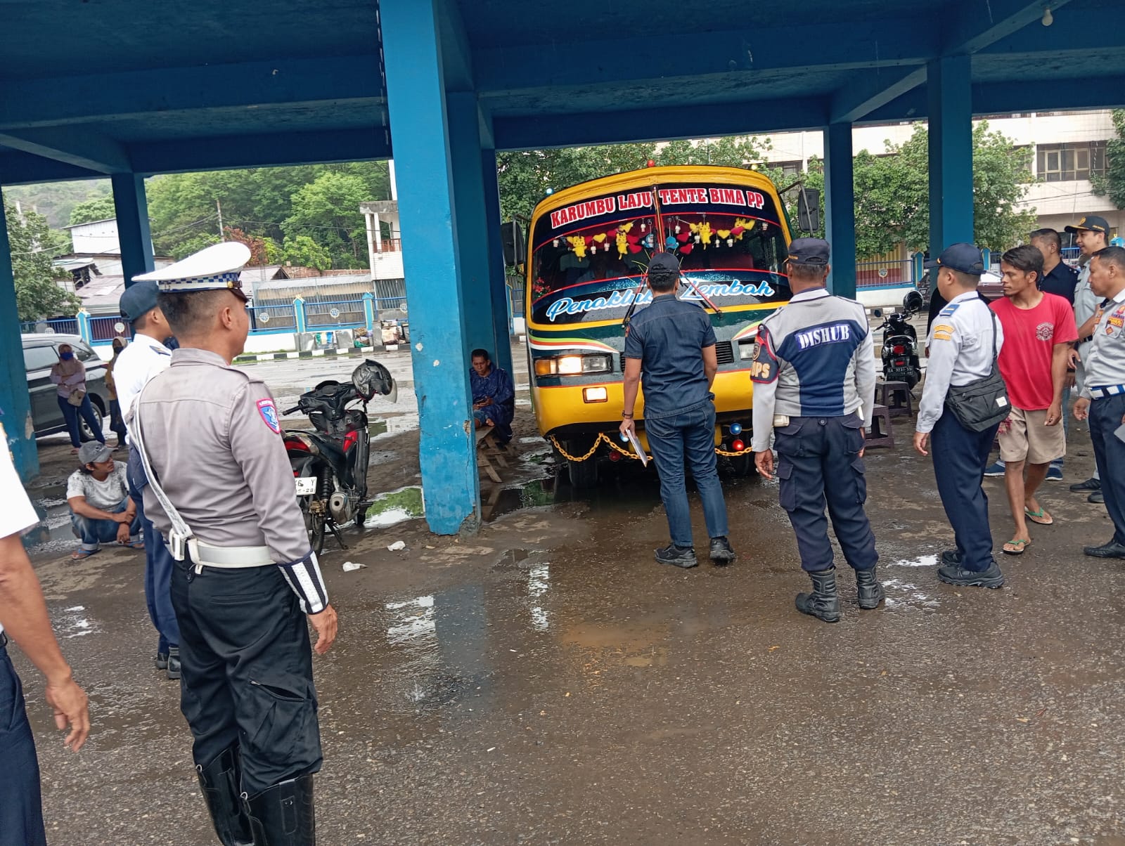 Kota Bima, NTB (04/12) – Dalam rangka memastikan kelayakan angkutan umum dan menjamin keamanan serta kenyamanan masyarakat, Satuan Lalu Lintas (Sat Lantas) Polres Bima Kota bersama Dinas Perhubungan Kota Bima melaksanakan kegiatan penegakan hukum terhadap angkutan Antar Kota Antar Provinsi (AKAP), Antar Kota Dalam Provinsi (AKDP), dan pariwisata.