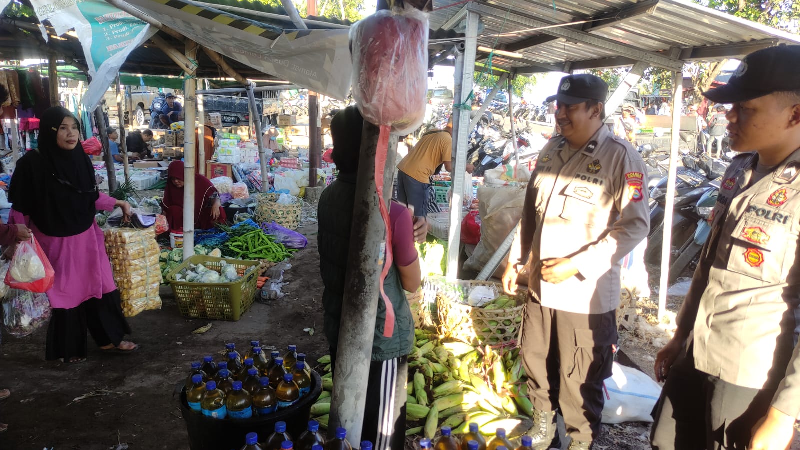 Lombok Utara – Monitoring ketersediaan pangan di Kecamatan Kayangan, Polsek Kayangan lakukan patroli pasar di pasar Dusun Tampes, Desa Selengen, Kecamatan Kayangan, Kamis (5/12).