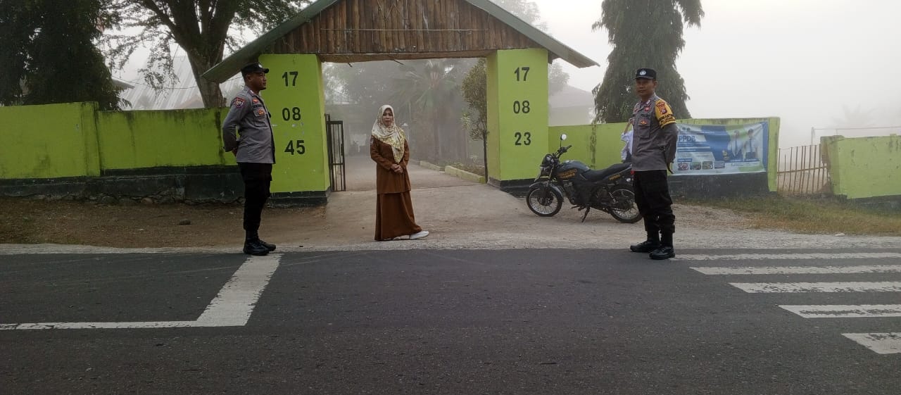Sumbawa Besar -NTB, Personel Polsubsektor Lenangguar Polsek Ropang melakukan kegiatan strong point di depan SMPN I Lenangguar pada Jumat (6/12/2024)pagi.