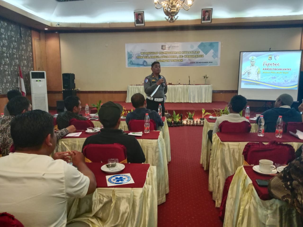 Lombok Tengah, (NTB) – Satuan Lalu-lintas Polres Lombok Tengah melaksanakan Workshop dalam rangka sosialisasi tata tertib Berlalulintas kepada tenaga Ambulance Desa se-Kabupaten Lombok Tengah.