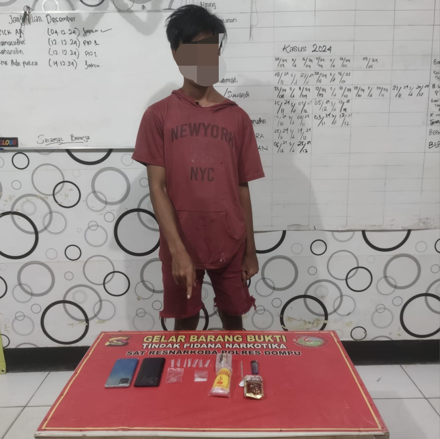 Dalam upaya tegas memberantas peredaran narkotika, Tim Khusus Satresnarkoba Polres Dompu berhasil menangkap seorang terduga pelaku penyalahgunaan narkotika jenis sabu pada Jumat, 6 Desember 2024, sekitar pukul 20.15 WITA. Penangkapan dilakukan di sebuah rumah di Dusun Lanci 1, Desa Lanci Jaya, Kecamatan Manggelewa, Kabupaten Dompu.