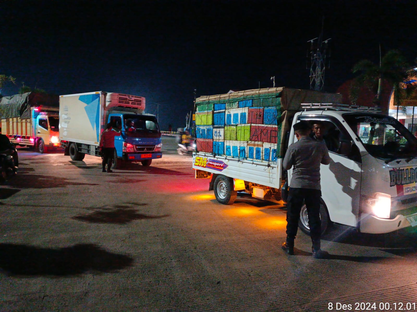 Bertempat di Dermaga II Pelabuhan PT ASDP Lembar, petugas melaksanakan pengamanan serta pemeriksaan penumpang dan kendaraan yang akan diberangkatkan menggunakan kapal KMP Sindu Dwitama menuju Pelabuhan Padangbai, Bali. Kegiatan ini dimulai pada pukul 21.30 WITA hingga selesai.