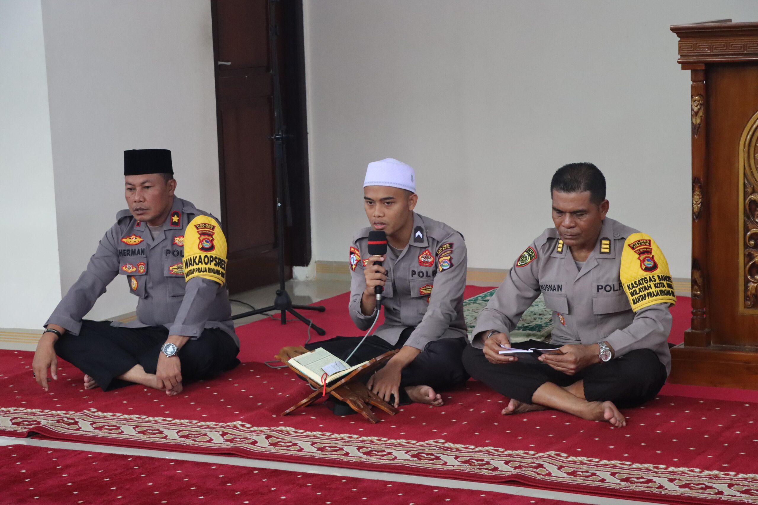 Kota Bima, NTB (12 Desember 2024) – Polres Bima Kota melalui kegiatan Binrohtal (Bimbingan Rohani dan Mental) kembali melaksanakan program untuk meningkatkan kualitas karakter anggota Polri yang religius dan humanis. Kegiatan yang dipimpin oleh Wakil Kepala Polres Bima Kota, KOMPOL Herman, S.H., bersama Kabag SDM Polres Bima Kota, AKP Husnain, ini diadakan di Masjid Jabal Qubis Polres Bima Kota pada Kamis (12/12/2024).
