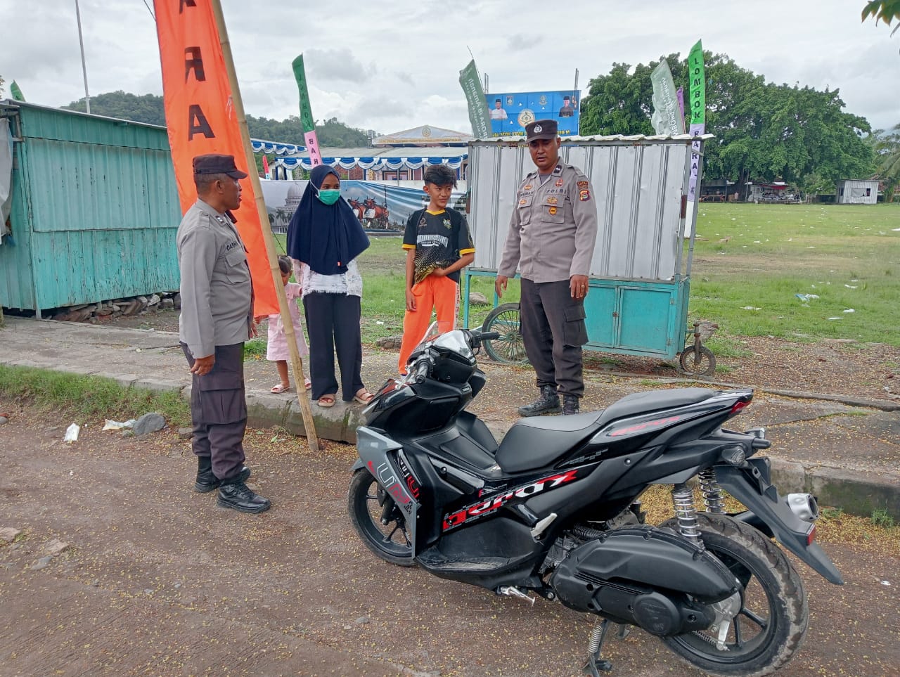 Setelah dari lapangan Mareje, patroli dilanjutkan ke objek vital (obvit) Pegadaian cabang Gerung dan obvit Bank NTB Gerung pada pukul 12.10 WITA. Di kedua lokasi ini, petugas memberikan pesan-pesan Kamtibmas kepada petugas keamanan (security) dan pengelola parkir.