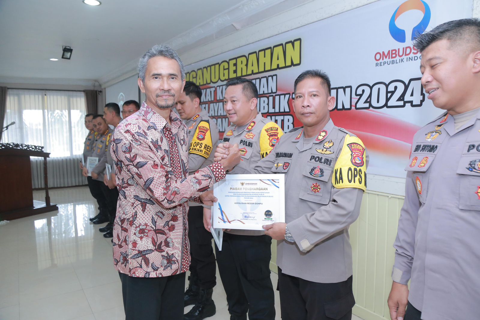 Penghargaan ini diserahkan langsung oleh Kapolda NTB dalam acara yang juga dihadiri Wakapolda NTB, para Pejabat Utama Polda NTB, Kapolres/Kapolresta se-jajaran Polda NTB, serta perwakilan Ombudsman NTB. Dalam sambutannya, Kapolda NTB mengapresiasi Polres Dompu atas pencapaian ini dan menekankan pentingnya menjaga standar pelayanan yang telah diraih.