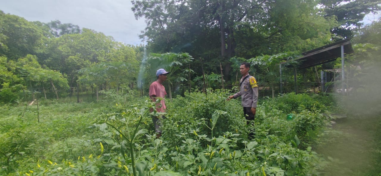 Dalam pemantauan tersebut, Brigadir Angga menyambangi salah satu warga yang telah memanfaatkan lahan pekarangan rumah untuk menanam berbagai jenis tanaman pangan, seperti cabai, mentimun, kacang panjang, dan tanaman pangan lainnya. Ia memberikan motivasi kepada pemilik lahan agar terus berinovasi dalam memanfaatkan lahan yang tersedia.