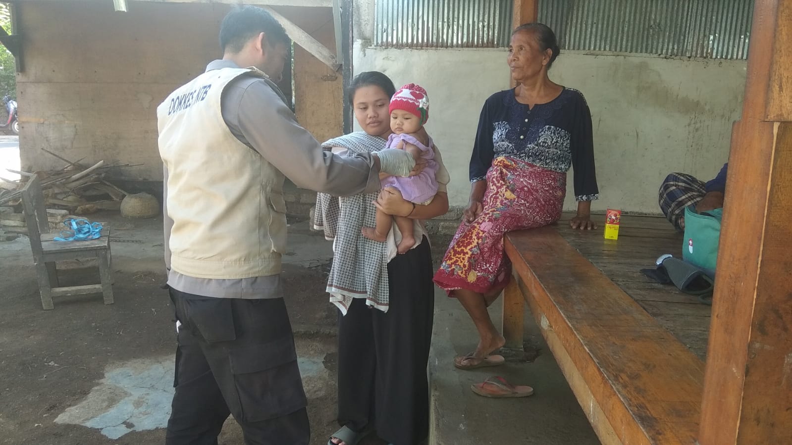 Seksi Dokes Polres Lombok Utara bersama dengan Puskesmas Gangga berikan pelayanan kesehatan dan posyandu gratis kepada masyarakat Desa Sambik Bangkol, Kecamatan Gangga.