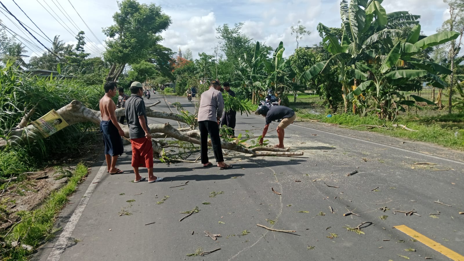 Ia mengatakan pihaknya bersama masyarakat bahun membahu menggunakan sinso untuk memotong batang pohon yang menutupi jalan tersebut.