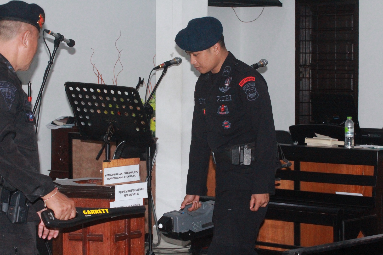 “sterilisasi ini dilakukan pada setiap benda-benda yang ada di dalam gedung maupun pekarangan diperiksa dengan teliti untuk memastikan semua yang ada di dalam maupun di luar gedung supaya tidak ada hal-hal yang mengganggu ataupun membahayakan umat Kristiani ketika melaksanakan Persembahyangan Natal,”Kata Kompol Eka
