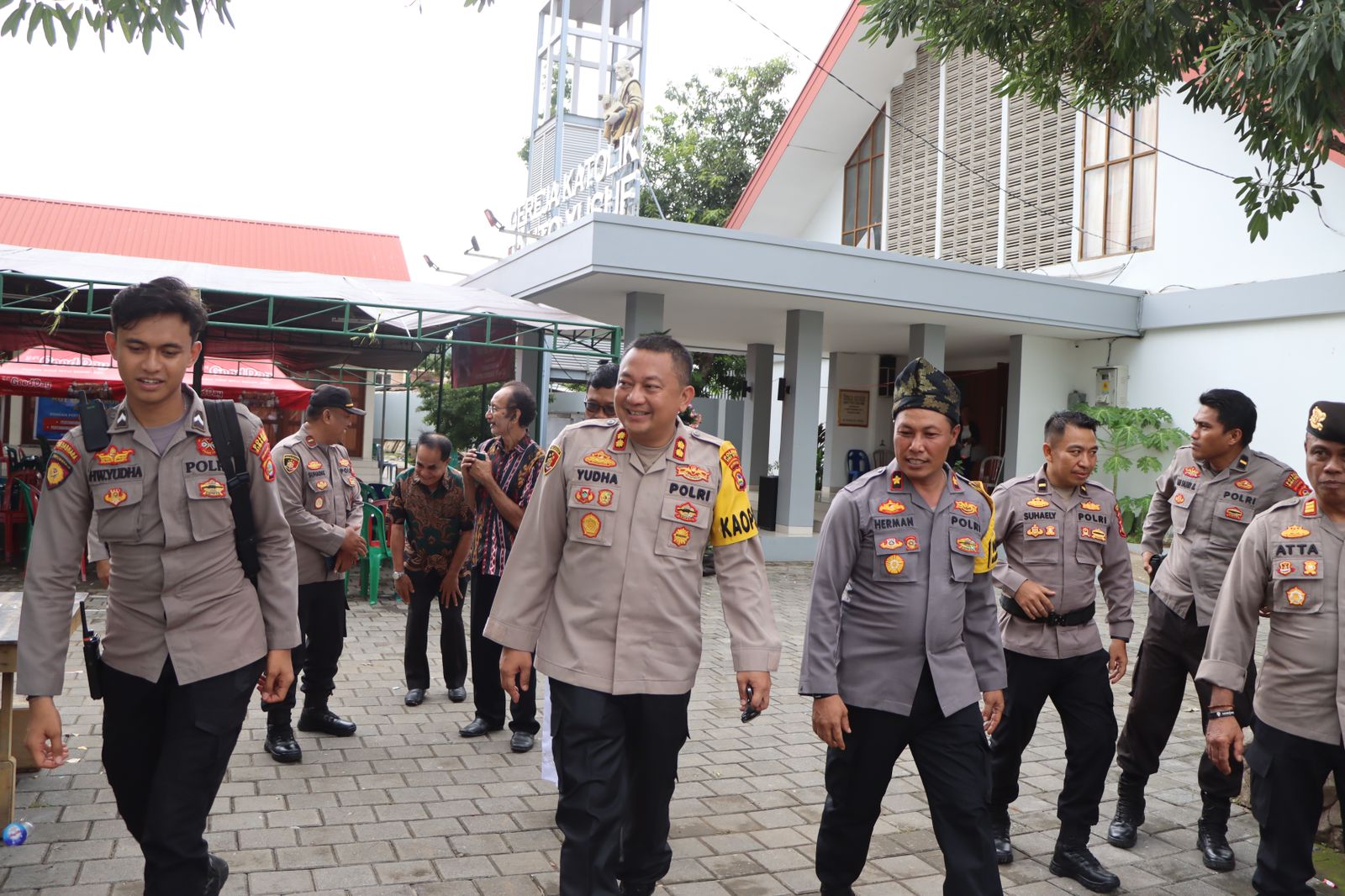 Dalam kegiatan tersebut, Kapolres Bima Kota didampingi oleh Wakapolres Kompol Herman, S.H., Kasat Samapta AKP Suhatta, Kapolsek Rasanae Timur Ipda Suhadak, dan Kapospol Raba Ipda L. Solihin. Terlihat jemaat mulai memadati gereja untuk mengikuti jalannya ibadah Natal. Kapolres juga menyempatkan diri berdialog dengan pengurus gereja terkait kegiatan yang dilaksanakan.