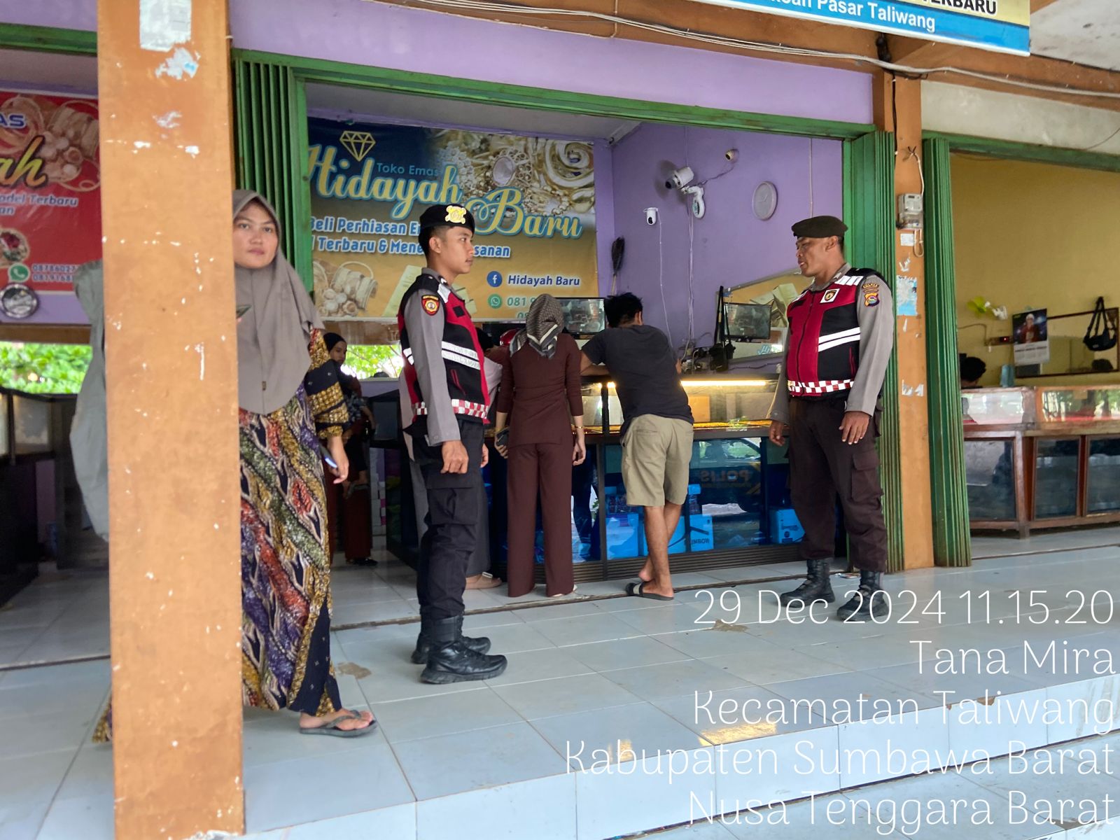 Sumbawa Barat – Sat Samapta Polres Sumbawa Barat menggelar patroli dialogis kepada para pelaku perdagangan di Pasar Tana Mira Kecamatan Taliwang Kabupaten Sumbawa Barat, pada hari Minggu, 29 Desember 2024 pukul 11.00 WITA.